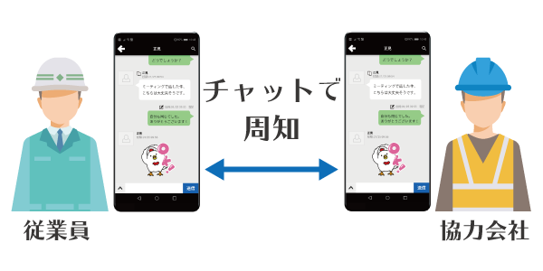 MOT/TEL(モッテル)のビジネスチャット機能を使い、ペーパーレスで危険予知などの周知が可能です。