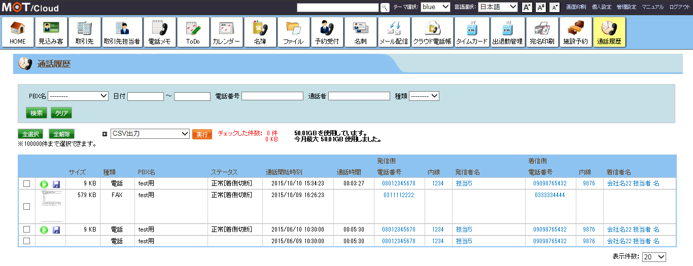 全ての外線通話を自動で録音することができます。